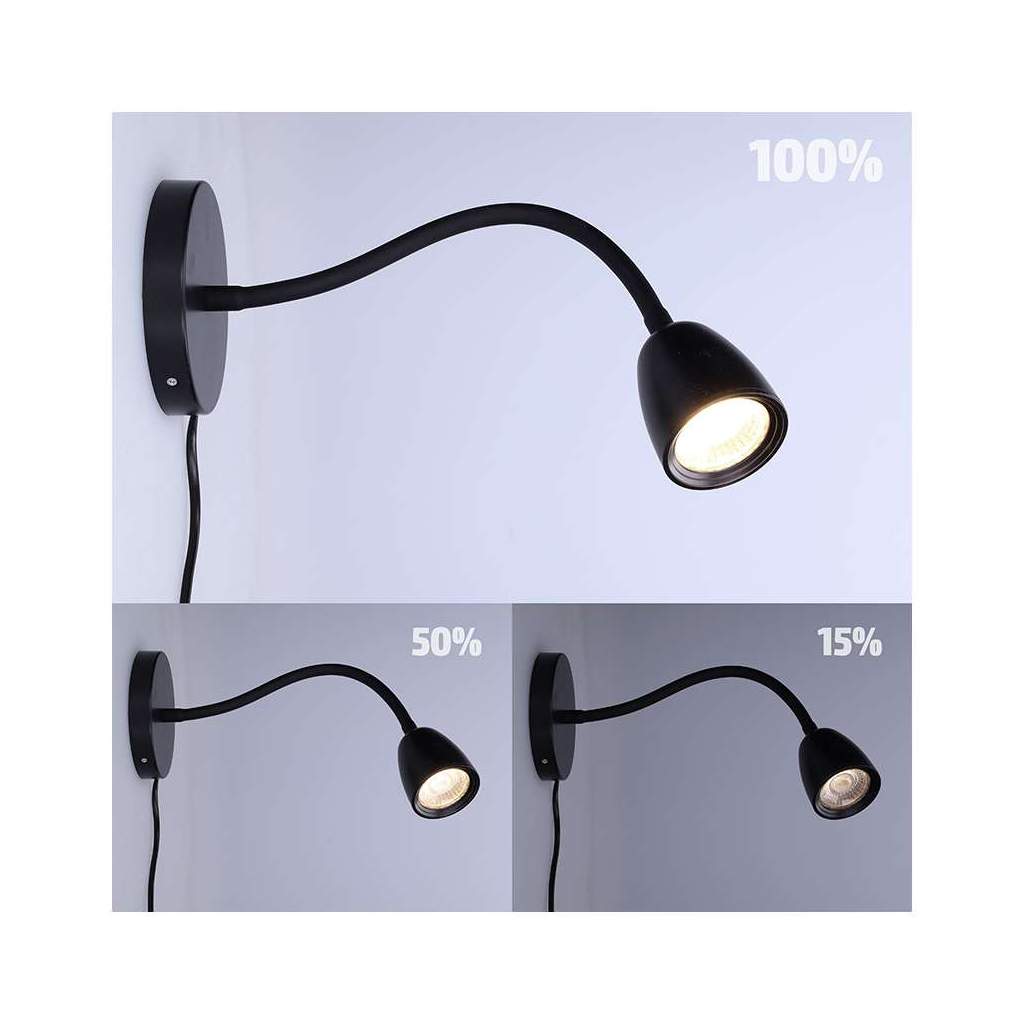 Lampička disponuje praktickým 3-stupňovým stmíváním, které umožňuje snadno nastavit intenzitu světla pomocí jednoduchého vypínače na kabelu. Stačí krátce stisknout pro plný výkon, dvakrát pro poloviční a třikrát pro minimální svit. Tento systém zajišťuje flexibilitu a příjemnou atmosféru doma či v kanceláři.