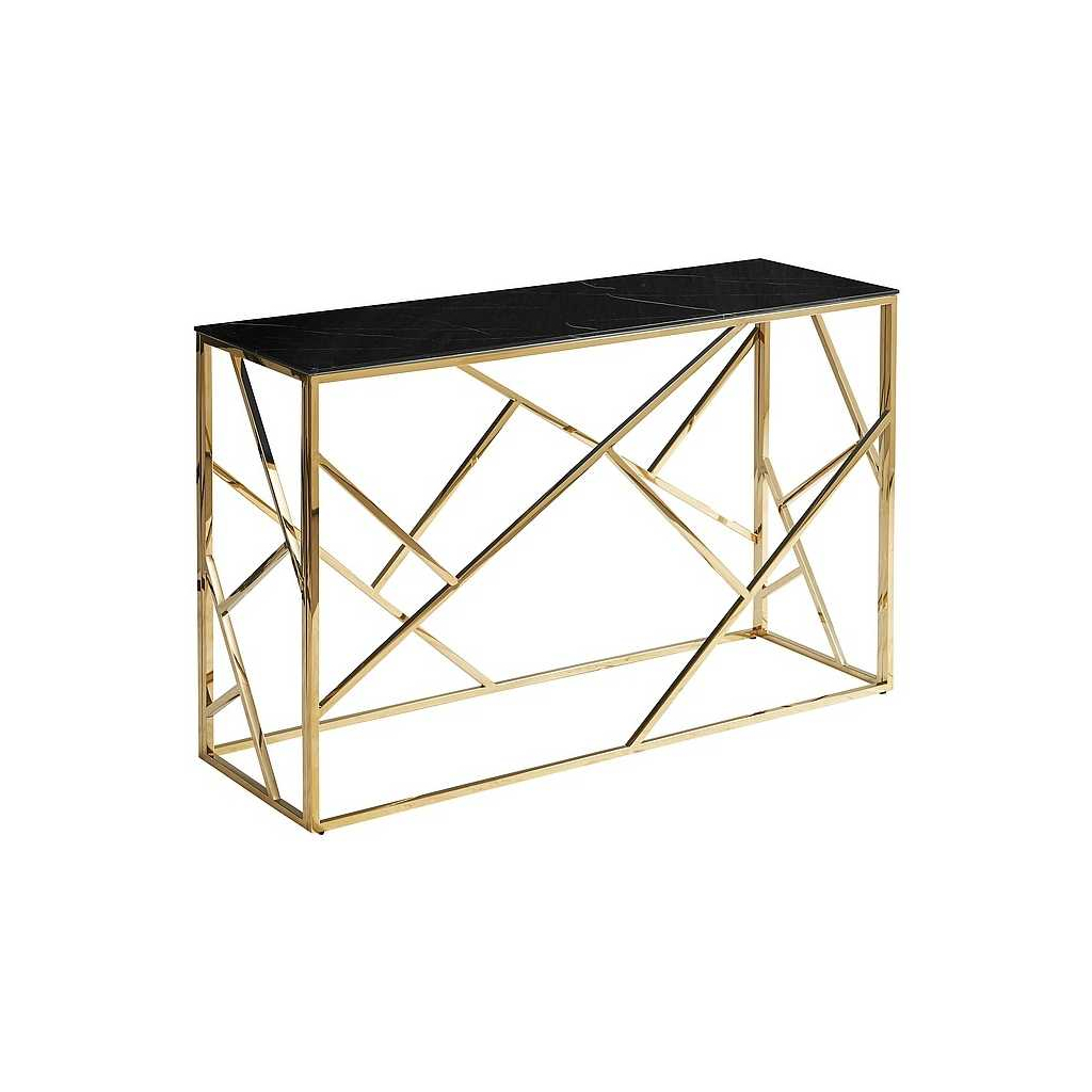 Horní deska z tvrzeného skla s decentním dekorem mramoru stolku dodává jemný kontrast a zvyšuje jeho exkluzivní vzhled.
