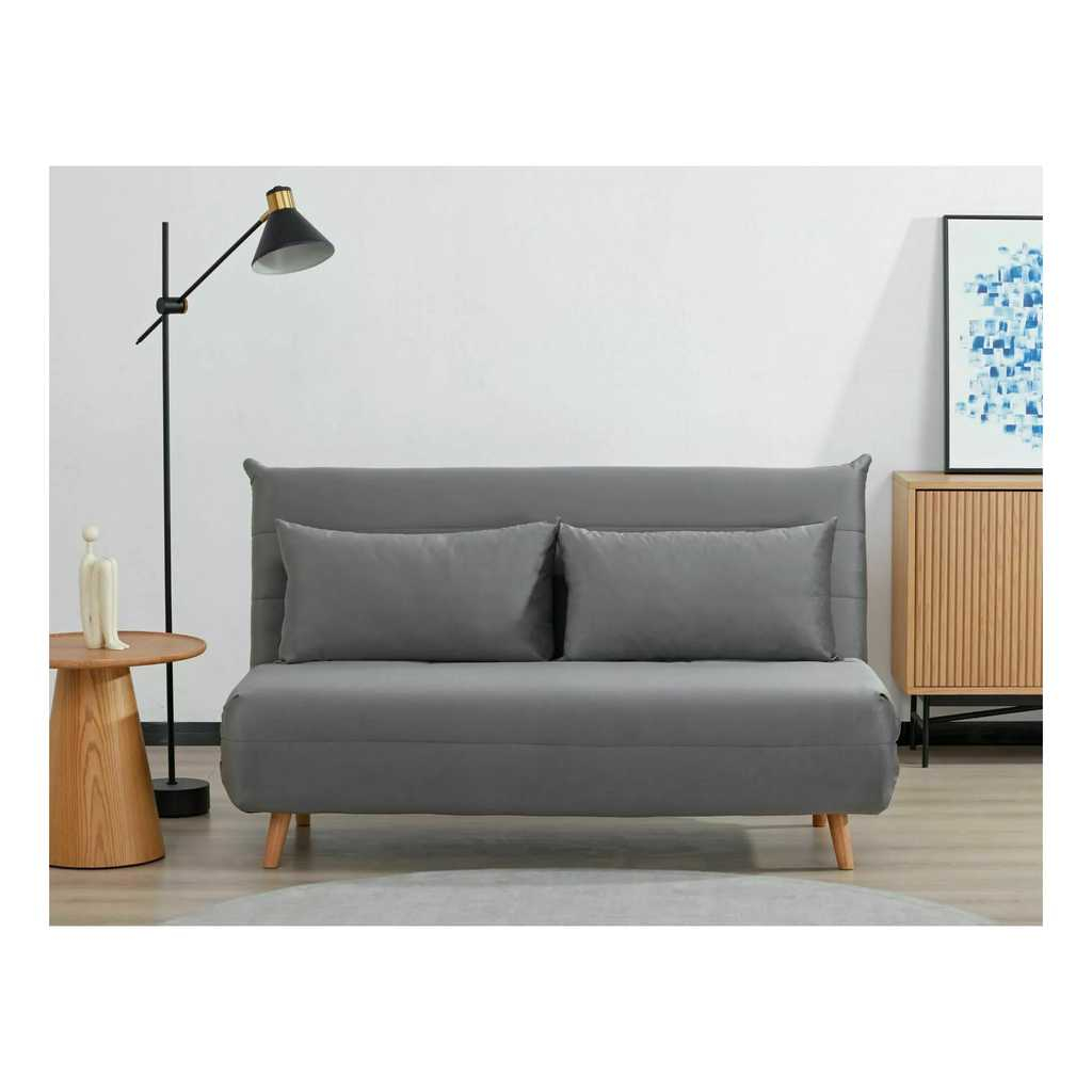 Pohovka je čalouněná velice příjemnou. O stabilitu se postarají čtyři dřevěné nožky. Součástí sedačky jsou také dva čalouněné polštáře.
