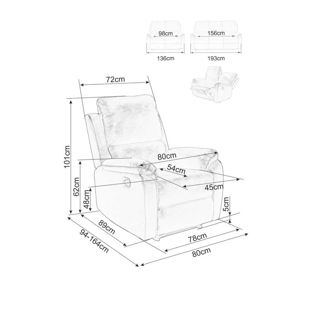 Pohovka je robustní a pevná, s nosností až 450 kg, což zaručuje dlouhou životnost a spolehlivost. Její rozměry jsou 193 cm na délku a 94 až 164 cm na hloubku v závislosti na poloze, což poskytuje variabilitu podle potřeby odpočinku nebo sezení. Výška sedáku od země je 48 cm, a hloubka sedáku činí 54 cm, což přispívá k ergonomickému sezení.