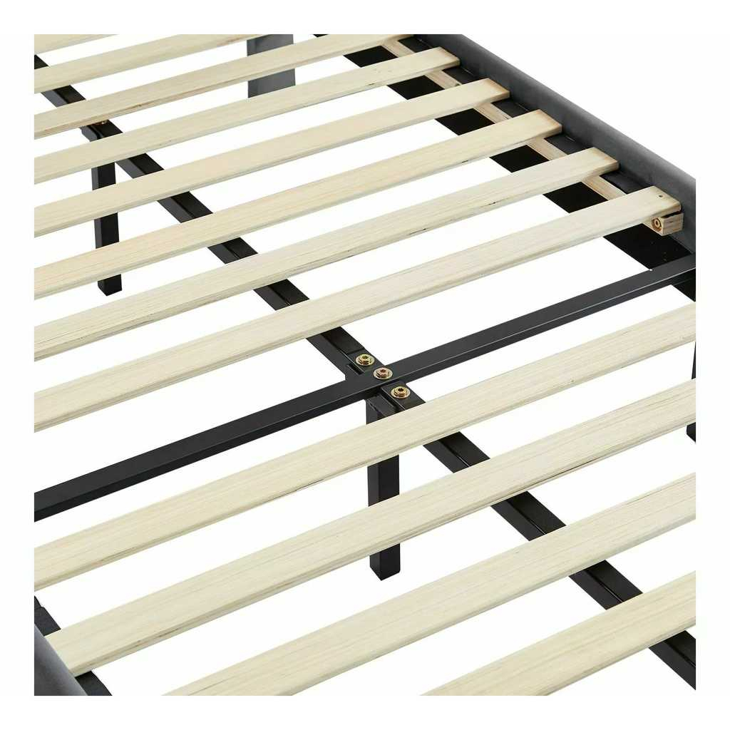 Spací plochu tvoří lamelový rošt s rozměry 160 × 200 cm – přesně takový rozměr matrace k posteli doporučujeme. Konstrukce pod roštem rozkládá váhu mezi několik nožiček, díky čemuž postel unese bez problému až 240 kg.