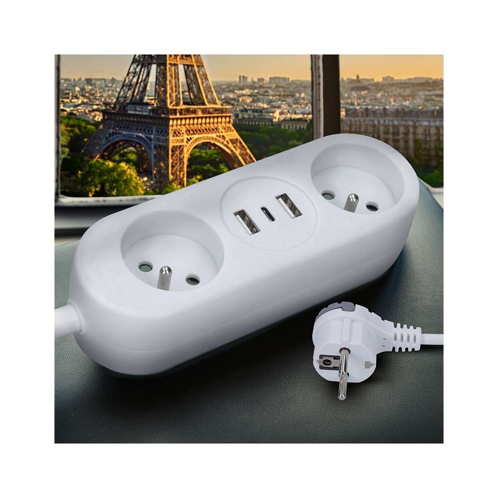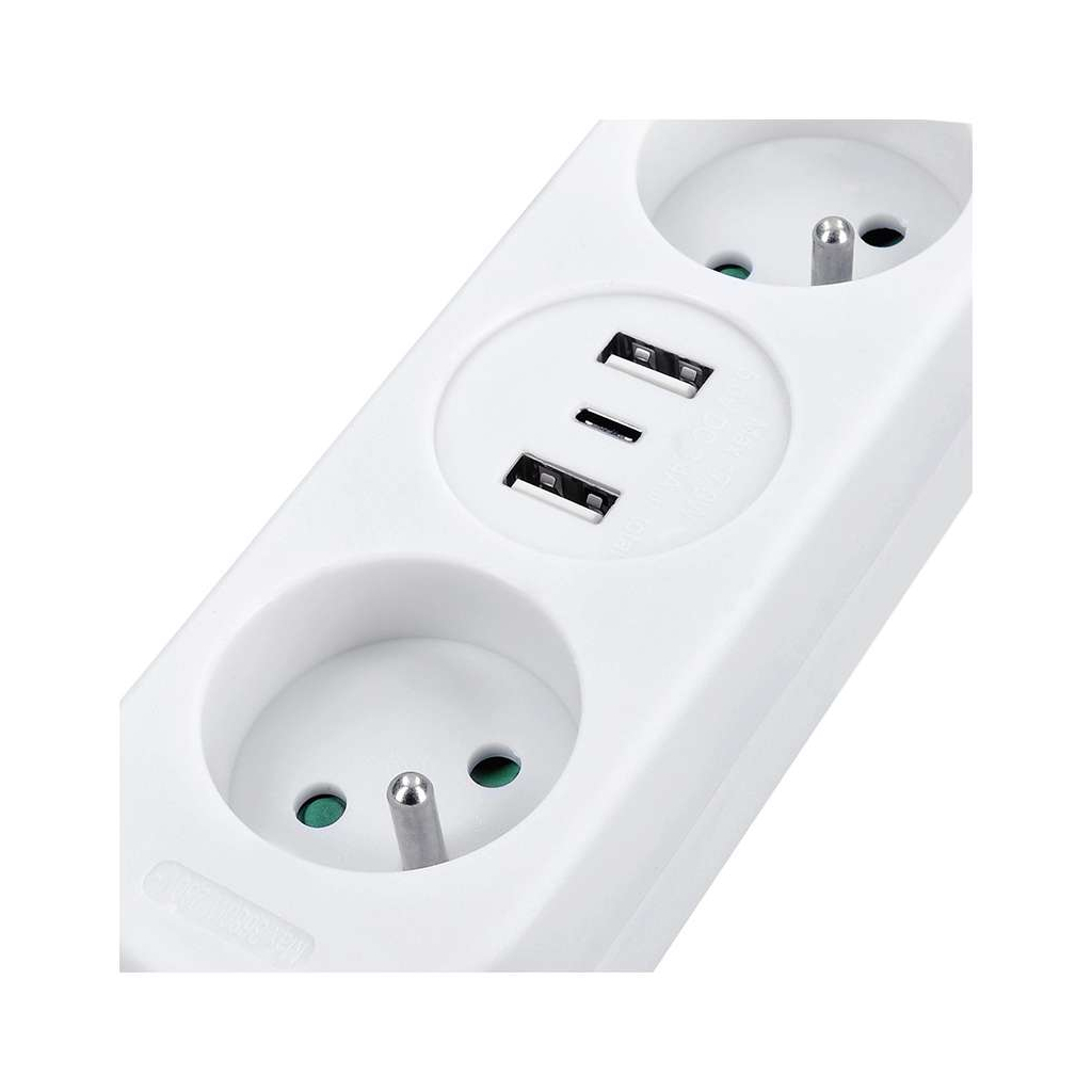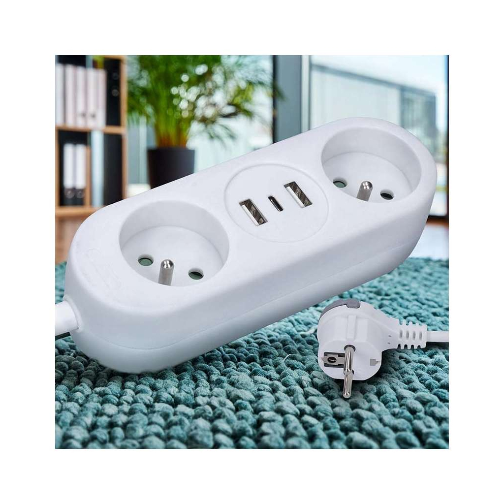 Prodlužovací kabel nabízí praktické řešení pro připojení více elektrických zařízení a zároveň pohodlné nabíjení přes USB porty. Díky dvěma zásuvkám a třem USB portům (včetně moderního USB-C) zvládnete napájet klasické přístroje i nabíjet smartphony, tablety či další elektroniku bez nutnosti adaptérů.