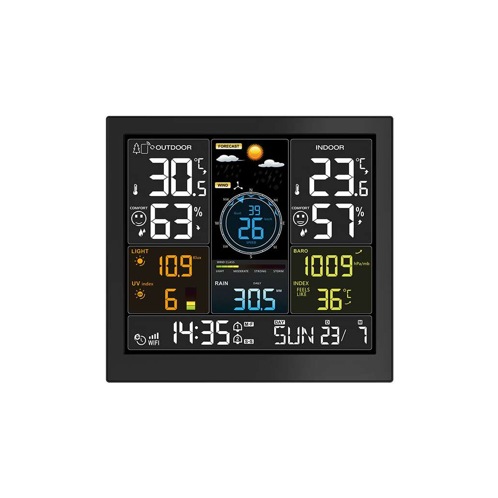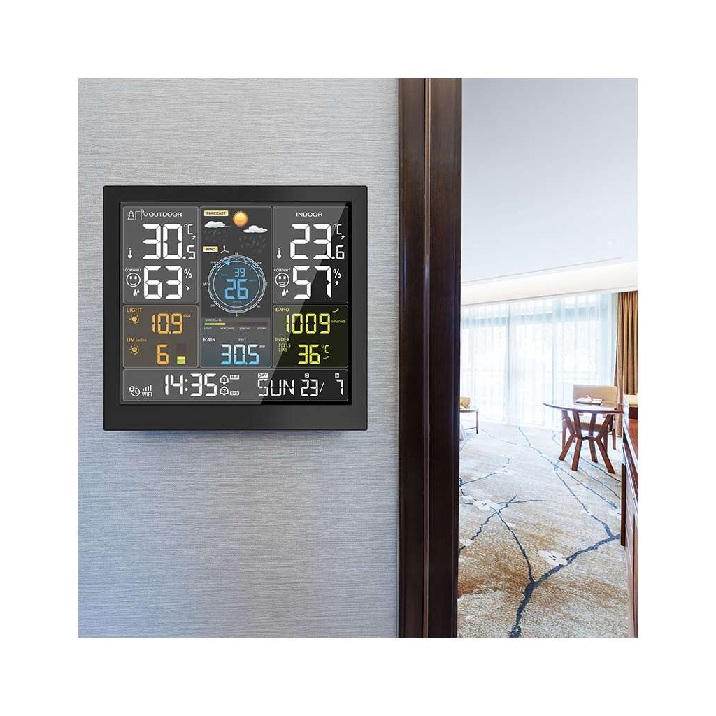 Profesionální meteostanice TE93 WiFi představuje špičkové řešení pro všechny, kteří potřebují spolehlivá a přesná meteorologická data. Díky připojení k WiFi a kompatibilitě s aplikací Tuya/Smart Life máte všechny aktuální hodnoty i historické statistiky vždy pohodlně k dispozici na vašem mobilním telefonu.