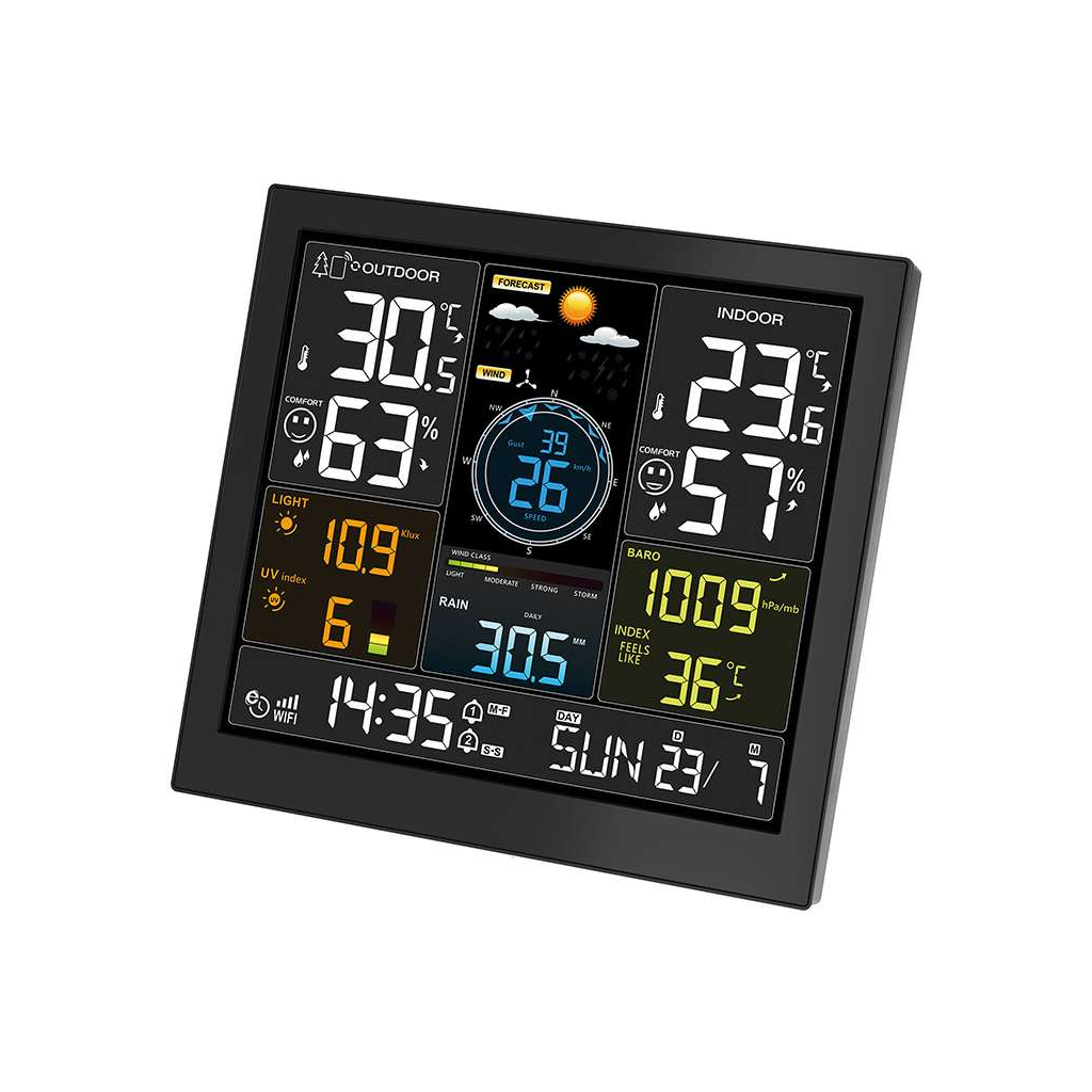 Elegantní design s kompaktními rozměry a vysoká spolehlivost díky 5leté záruce dělají z této meteostanice vynikající volbu pro profesionály i náročné uživatele. Přesná data s automatickou synchronizací času a podpora různých předpovědních funkcí nabízí komplexní přehled, který ocení každý uživatel.