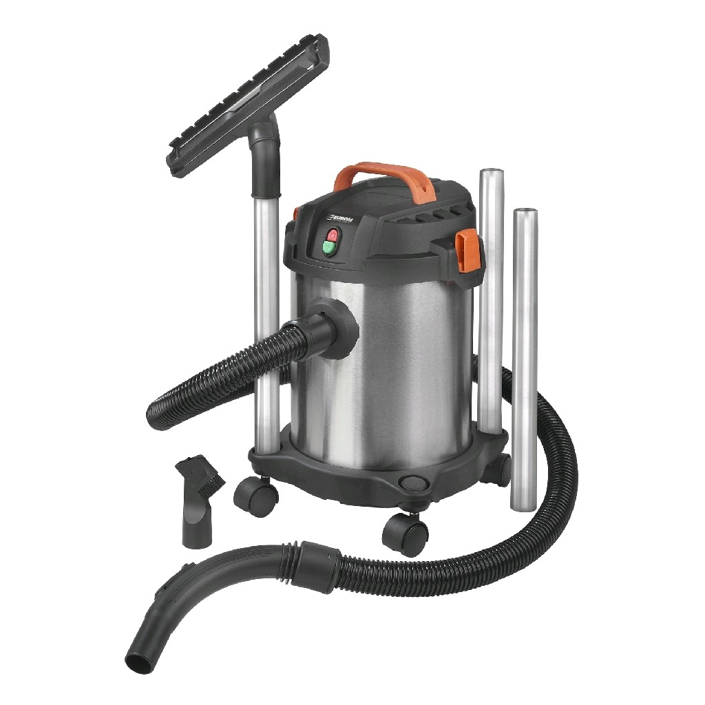 Potěší vás funkce suchého i mokrého vysávání a foukání. Objem jeho sběrné nádoby je 12 l. Praktické příslušenství zahrnuje také kontrolku přetížení, teleskopickou trubici, sací hadici o průměru 32 mm a délce 1,6 m, HEPA filtrem, kombinovaný kartáč a rohový návstavec.