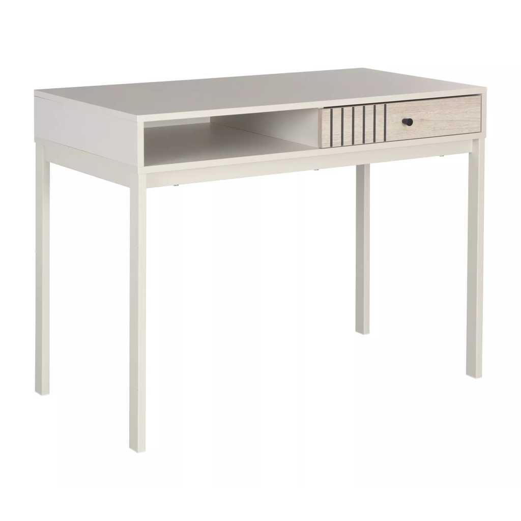 Stůl je navržen s ohledem na praktičnost – obsahuje prostorný otvor pro uložení dokumentů nebo drobných předmětů, což pomáhá udržet pracovní plochu přehlednou a organizovanou. Díky své kompaktní hloubce se snadno vejde i do menších místností, aniž by zbytečně zabíral prostor.