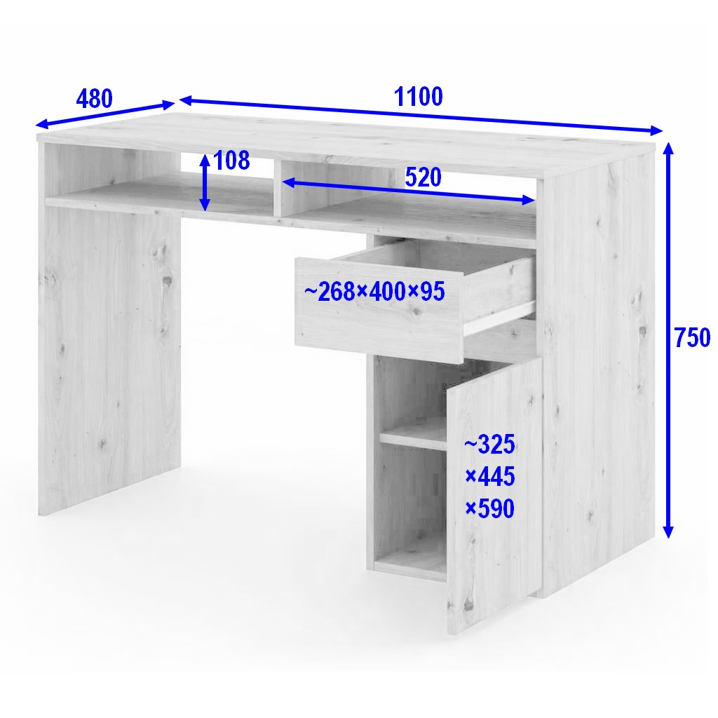 Deska má tvar obdélníku s rozměry 110 × 48 cm, což bohatě stačí na běžné psaní nebo práci na notebooku. Její nosnost je 25 kg a hned pod ní najdete: