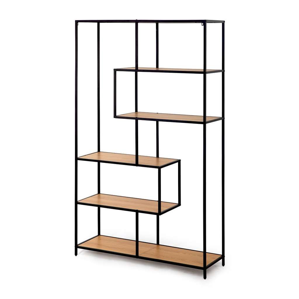 Regál Moreno IV nabízí moderní a praktické řešení úložného prostoru pro vaši domácnost či kancelář. Díky kombinaci pevné kovové konstrukce a dřevěných polic s přírodním dekorem je tento regál nejen trvanlivý, ale také vizuálně atraktivní. Jeho asymetrické uspořádání polic vytváří zajímavý designový prvek, který zároveň poskytuje dostatek místa pro knihy, dekorace nebo další doplňky.