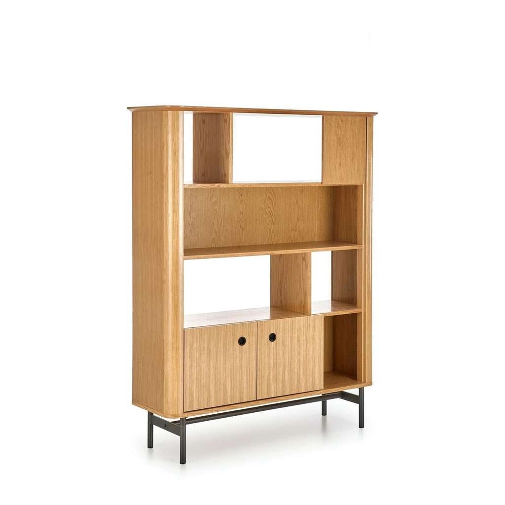 Jeho promyšlený design s otevřenými i uzavřenými policemi vám umožní efektivně uspořádat knížky, dekorace nebo méně viditelné předměty. Stabilní konstrukce na kovových nohách zároveň zajišťuje dlouhou životnost a odolnost regálu.