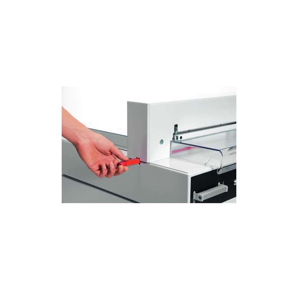 Tato řezačka nabízí digitální zobrazení míry zadního dorazu s manuálním vřetenovým posuvem, což výrazně usnadňuje přesné nastavení řezu. Optické vyznačení místa řezu napomáhá k dokonalé přesnosti každého střihu, zatímco možnost nastavení hloubky zářezu nože zajišťuje kvalitu a dlouhou životnost čepele z kvalitní oceli Solingen.