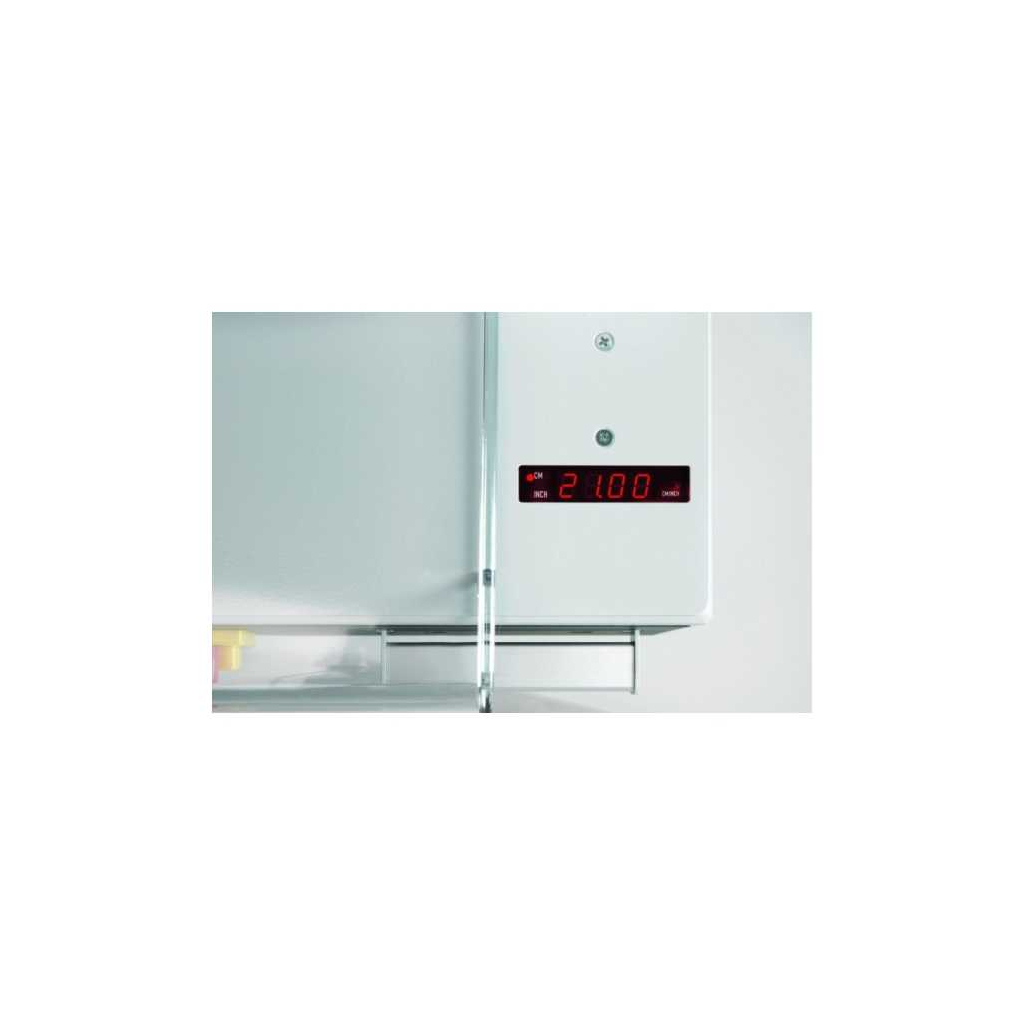 - Digitální zobrazení míry zadního dorazu (cm/palce)