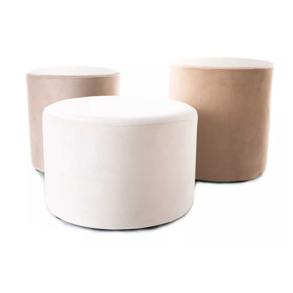 Každý taburet má různé rozměry, což zaručuje variabilitu použití a možnost snadného uspořádání podle vašeho prostoru a potřeb. Jsou navrženy tak, aby sloužily nejen jako pohodlné posezení, ale také jako doplněk k vaší domácnosti.