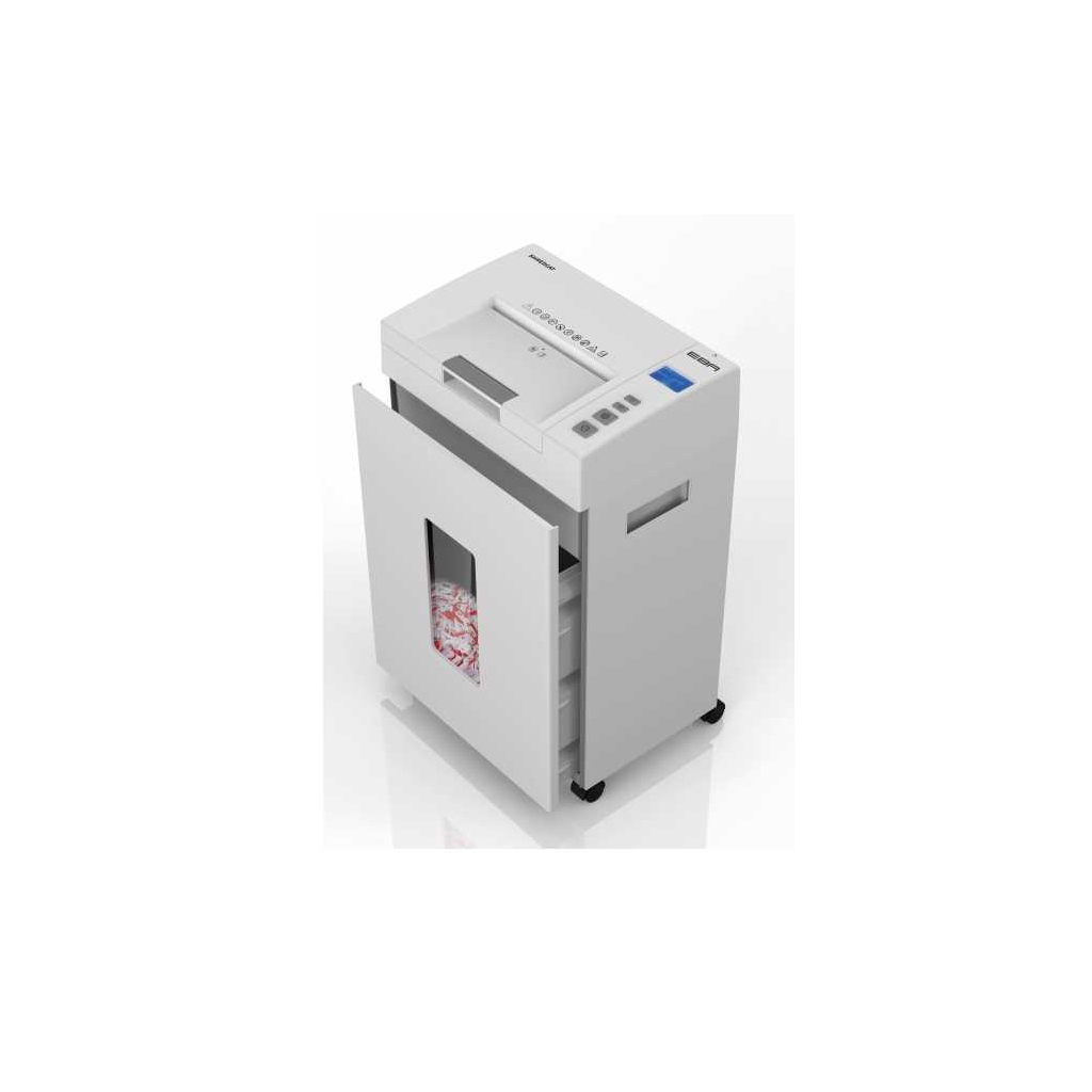 Skartování je provedeno pomocí křížového řezu o velikosti 4 x 10 mm, což odpovídá bezpečnostnímu stupni DIN P-4 a splňuje požadavky na důkladné utajení dokumentů. Skartovač je vybaven prostorným košem o kapacitě 26 litrů, což zajišťuje pohodlné používání bez častého vysypávání odpadu.