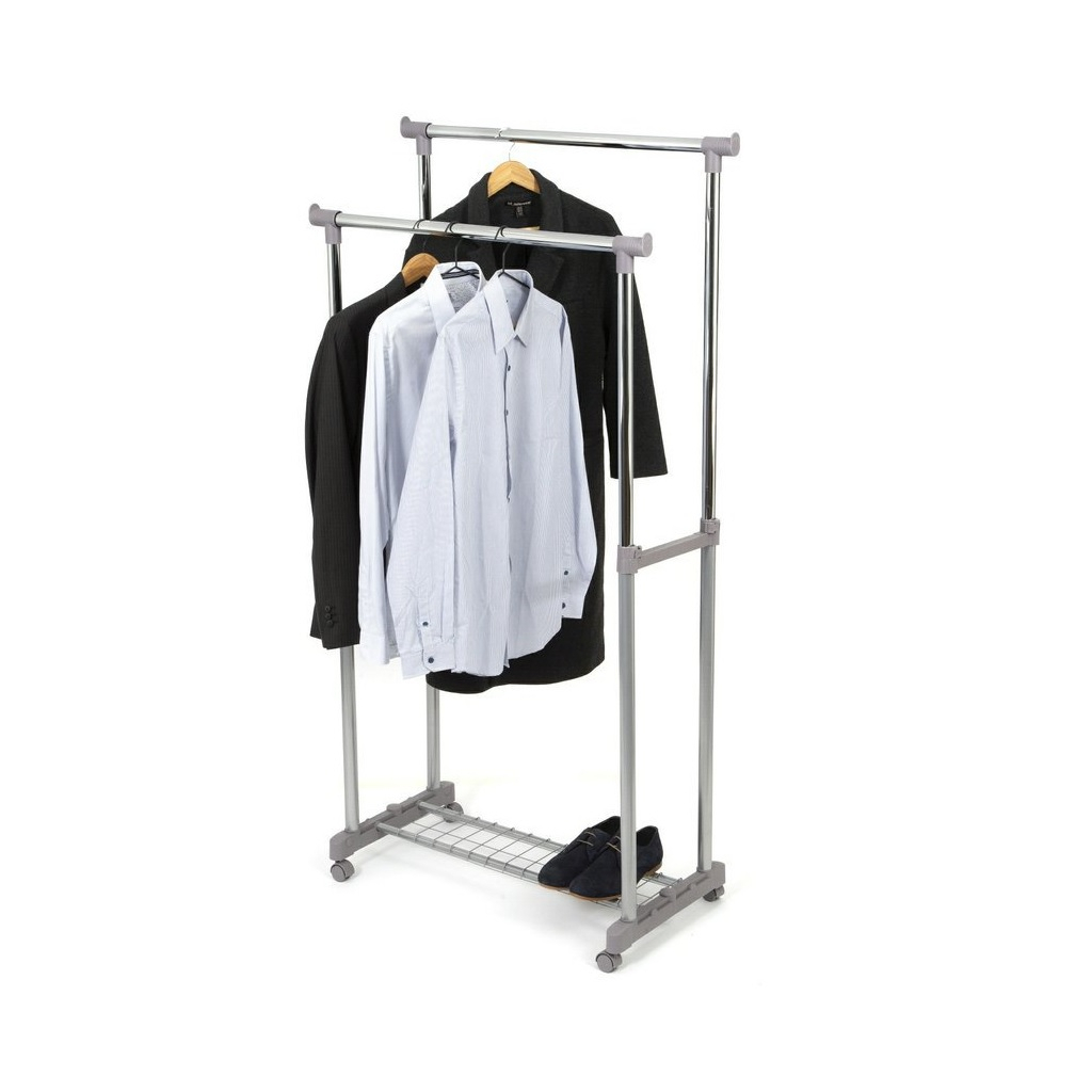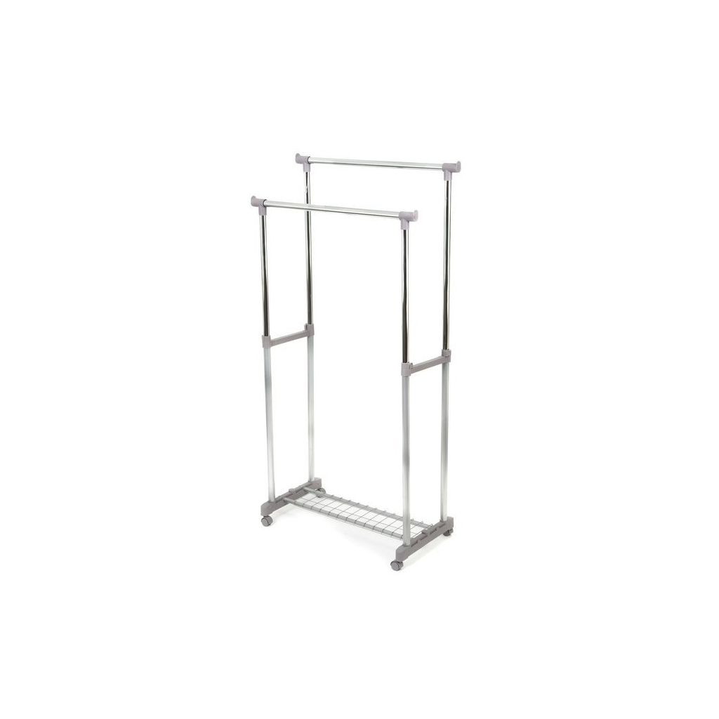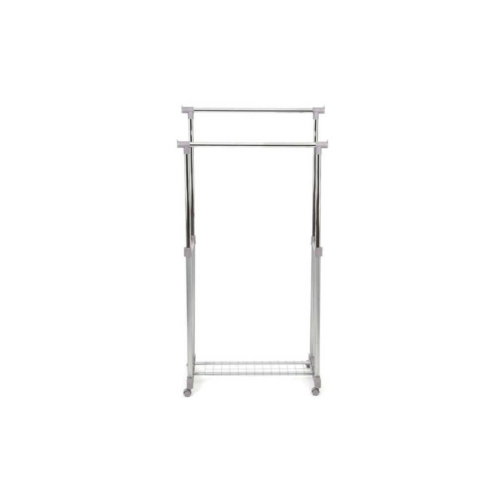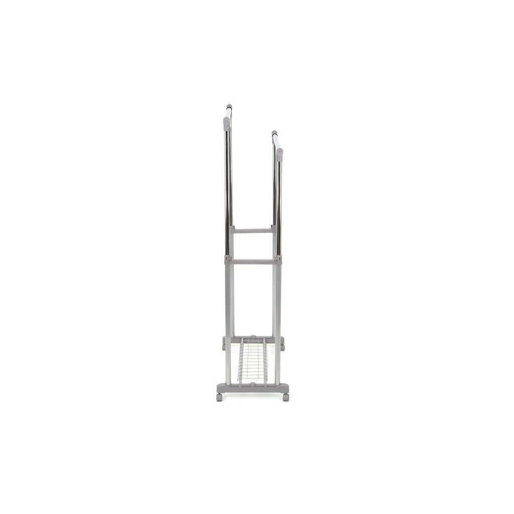 Stojan je vyroben v kombinaci kovu s plastovými částmi. Disponuje 2 tyčemi pro zavěšení oděvů a spodní mřížkou na uložení bot. Výhodou stojanu je možnost výškového nastavení obou závěsných tyčí od 91 do 160 cm. Pro snadnou manipulaci po prostoru jistě oceníte také kolečka.