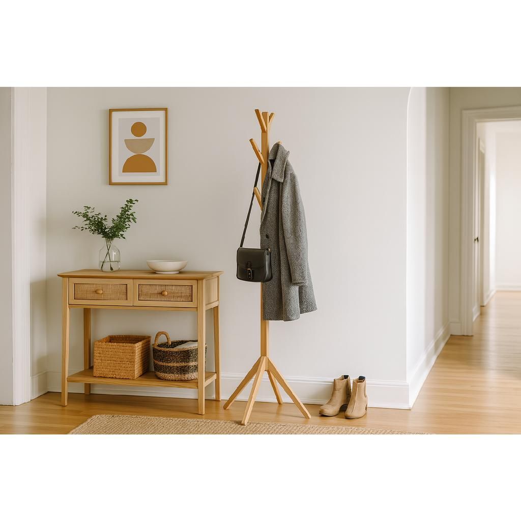 Abreus stojanový věšák kombinuje jednoduchost a funkčnost s elegantním minimalistickým stylem. Je to ideální doplněk, který splní nároky na praktičnost i estetiku vašeho domova či pracovního prostředí. Vyberte si spolehlivost a kvalitu s tímto odolným dřevěným věšákem.