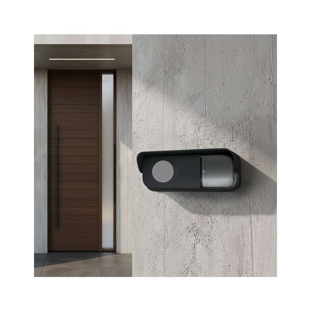 Odolné a vodotěsné provedení s krytím IP56 zaručuje spolehlivost i v nepříznivém počasí. Upevnění tlačítka je možné montážními otvory nebo jednoduše pomocí samolepicí podložky, což umožňuje rychlou a pohodlnou instalaci na dveře či zeď. Dosah signálu až 200 metrů na otevřeném prostoru zajistí bezproblémové použití i ve větších domácnostech nebo firmách.