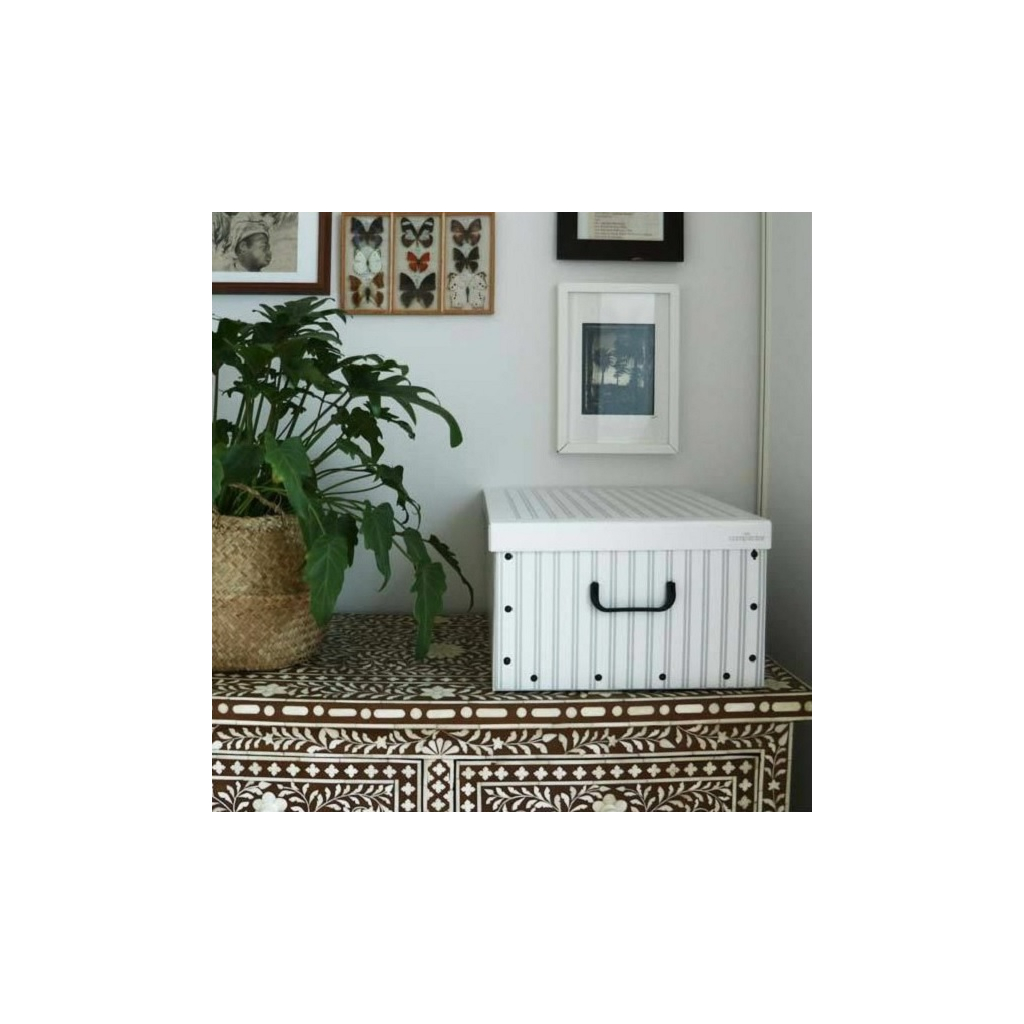 Skládací úložný box je praktickým doplňkem do kanceláří i do domácností. Disponuje rozměry 50 × 40 × 25 cm a je vyroben ze silné lepenky. Můžete tak do něj uložit téměř cokoliv. Krabici dodáváme společně s víkem, které vložený obsah ochrání například před prachem nebo proti vlhkosti. Výhodou krabice je praktické madlo na přední straně, které skvěle poslouží například pro pohodlné vytažení z police.