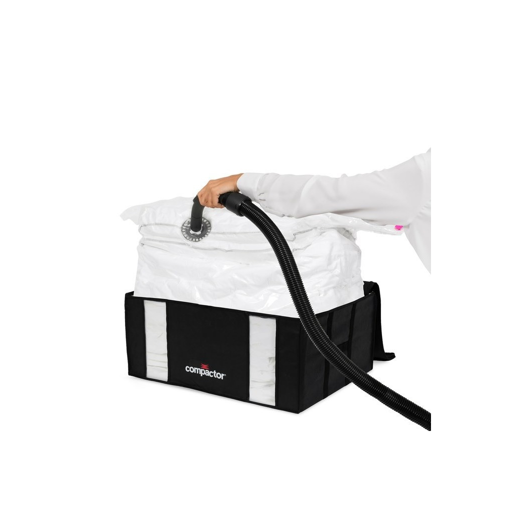 Vložený obsah doporučujeme uzavřít plastovým zipem a přebytečný vzduch následně odsát pomocí ventilu. Ventil funguje jednocestně a je kompatibilní s klasickými domácimi vysavači.