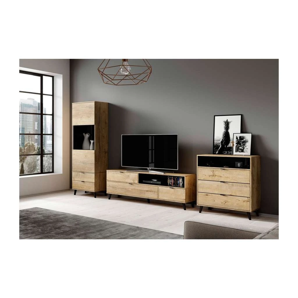 Vitrína Nest V, dub lefkas / černá