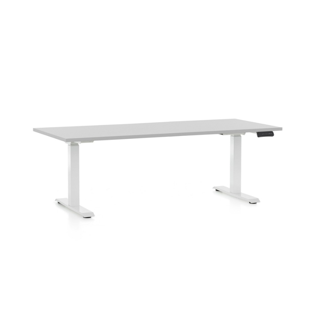 Desky těchto stolů jsou z laminované dřevotřísky s ochrannou ABS hranou. Kovové podnože mají variabilní délku a šířku bezmála 70 cm, což jim zaručí skvělou stabilitu. Napájení řeší kabel do klasické 230V zásuvky.