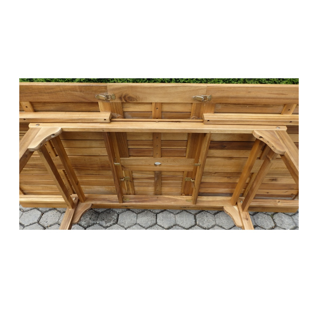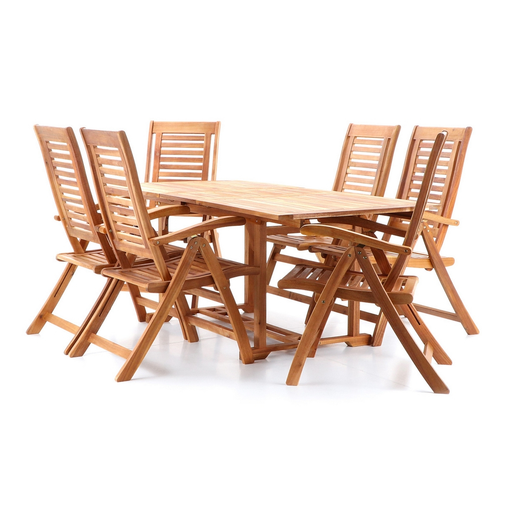 Nespornou výhodou této zahradní sestavy je možnost rozložení stolové desky. V základním složeném stavu je její délka 150 cm, v rozloženém pak 190 cm. Můžete tak vytvořit prostor pro další 2 místa k sezení. Oceníte také polohování zádového opěráku u zahradních židlí.