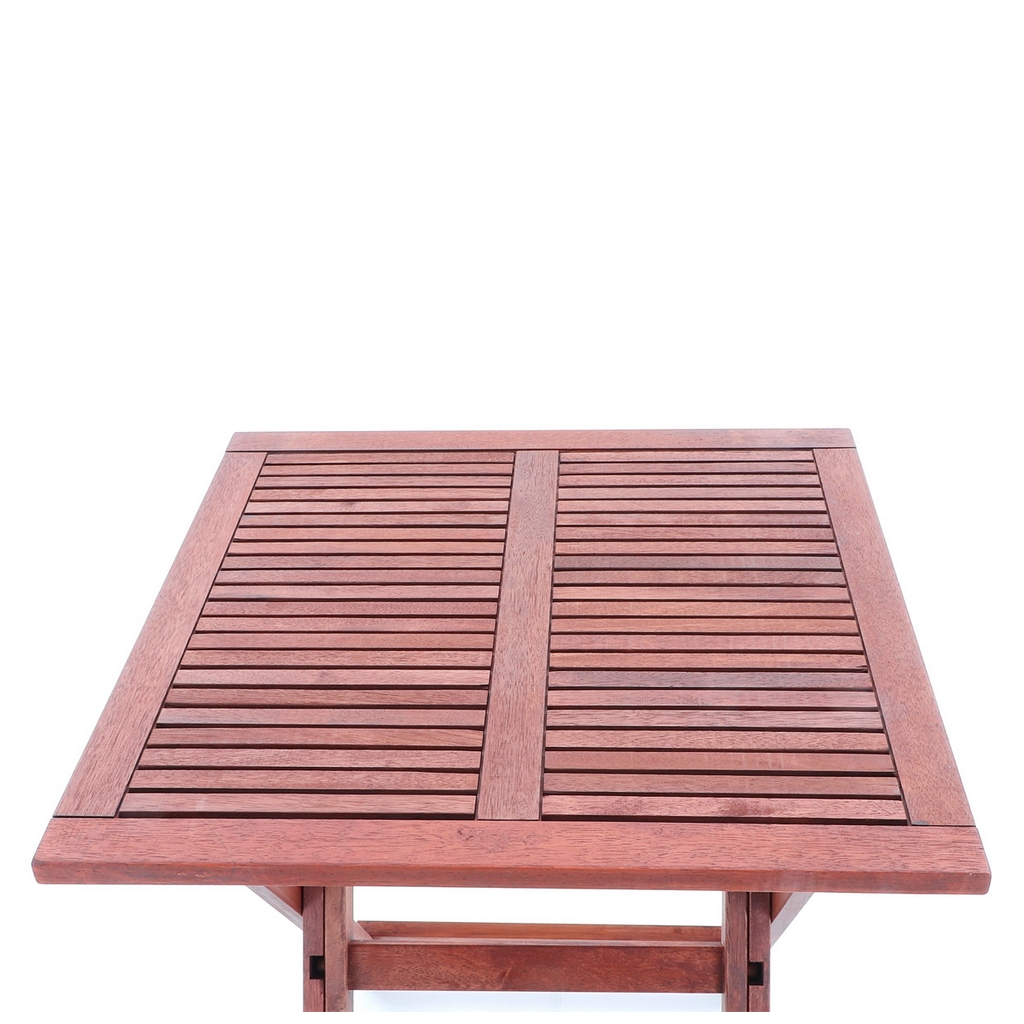 Konstrukce stolu je vyrobená z pevného dřeva meranti. Stůl je vhodný k vnitřnímu využití, případně v krytém prostoru v exteriéru. Pro použití ve venkovním nekrytém prostoru je nutná impregnace nábytku.